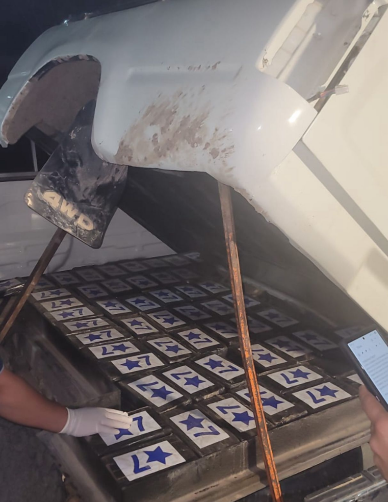 Tras una revisión minuciosa, localizaron un compartimiento oculto donde se encontraban los 170 kilos de supuesta cocaína, presuntamente destinados al tráfico ilícito a través de la frontera sur.