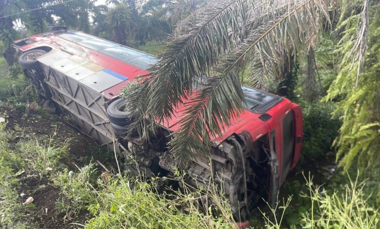 Olanchito.- Un autobús de transporte volcó este lunes en la comunidad de Armenia, Olanchito, Yoro, provocando lesiones en varios de sus pasajeros y una rápida movilización de los cuerpos de socorro en la zona.
