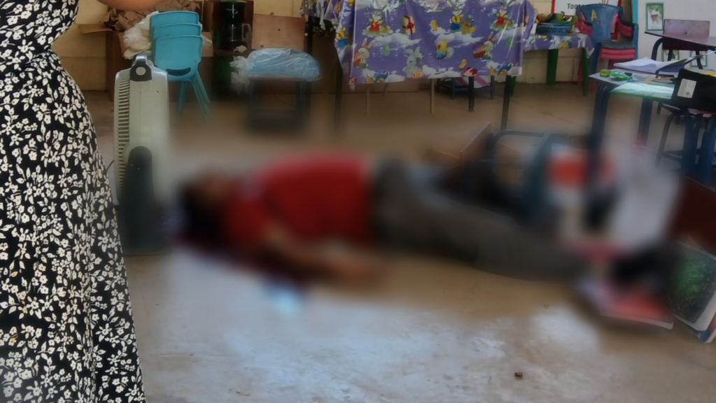 - Escena del crimen: El cuerpo del maestro quedó tendido dentro del aula, mientras los atacantes huyeron de la zona con rumbo desconocido.
