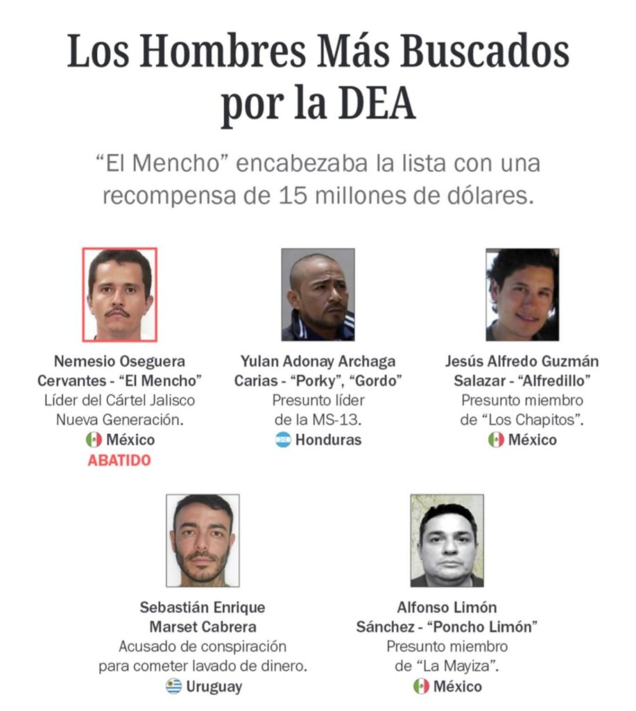 Así quedó la lista de los más buscados por EEUU con el fallecimiento de alias “El Mencho”