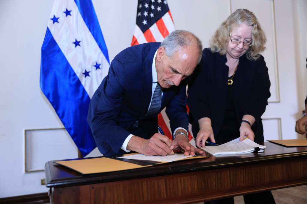 El acuerdo, firmado por el presidente y secretario de Salud, Nasry Asfura, y la encargada de negocios Colleen Hoey, presenta una particularidad en su financiamiento: