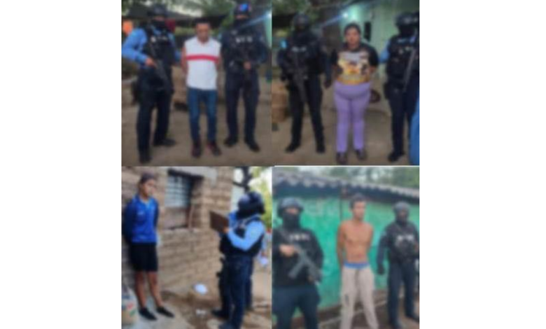 Los capturados fueron identificados como Marlon Noé Osorio Corrales, Karen Sobeyda Rodríguez Castro, y los hermanos Manuel Armando y Milka Sarahy Matamoros Castro.