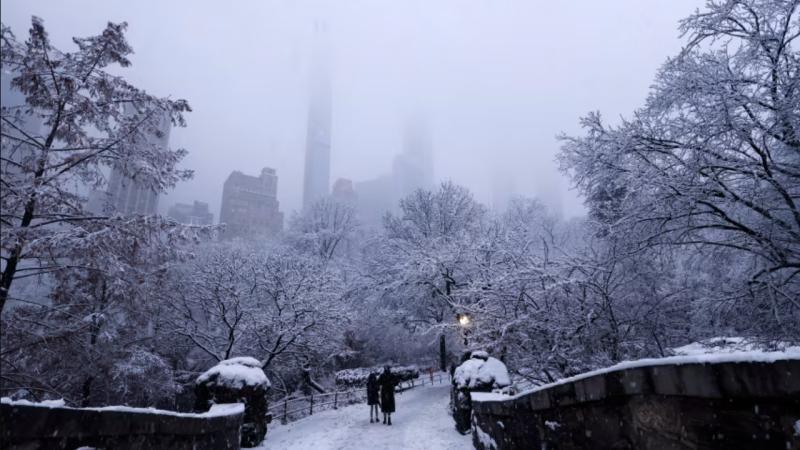 Se reportó que solo en la ciudad de Nueva York recibió entre 5 y 10 centímetros de nieve durante la madrugada, con 10 centímetros reportados en Central Park, la mayor cantidad desde 2022, según Oravec.