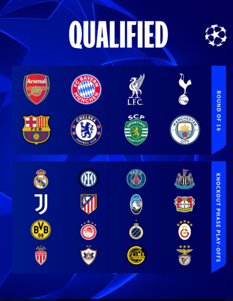 Arsenal, Bayern de Múnich, Liverpool, Tottenham, Barcelona, Chelsea, Sporting y Manchester City evitan la eliminatoria previa y acceden directamente a la fase de los ocho mejores.