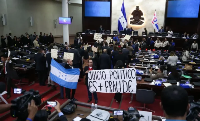 Tegucigalpa.- La junta directiva del Congreso Nacional aplicó una drástica medida disciplinaria contra 14 diputados de la bancada de Libertad y Refundación (Libre), quienes perderán 15 días de su salario. La sanción se produce tras los disturbios y gritos protagonizados por los parlamentarios durante la lectura formal de la denuncia de juicio político contra los funcionarios electorales Marlon Ochoa y Mario Morazán.