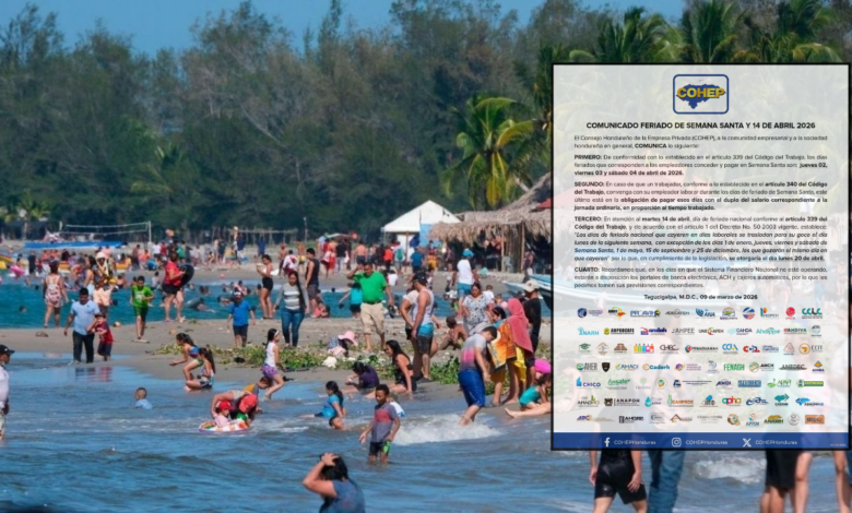 Honduras – El Consejo Hondureño de la Empresa Privada (COHEP) emitió un comunicado dirigido al sector empresarial y a la población hondureña en el que detalla cómo se aplicarán los feriados correspondientes a la Semana Santa de 2026, conforme a lo establecido en el Código del Trabajo.