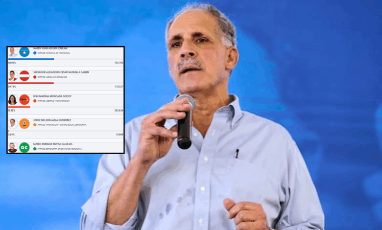 Muy cerca aparece Salvador Nasralla con un 39.78%, es decir, 731,527 votos, confirmando uno de los procesos electorales más competitivos de la última década y manteniendo en vilo a la población hondureña.