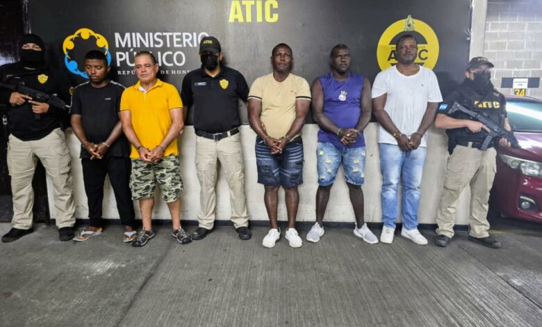 La Sección Antidrogas de la Fiscalía Especial Contra el Crimen Organizado logró una condena mediante procedimiento abreviado contra cinco ciudadanos colombianos vinculados al tráfico de drogas agravado, tras la incautación de 3,993 kilos de cocaína en el Caribe hondureño.