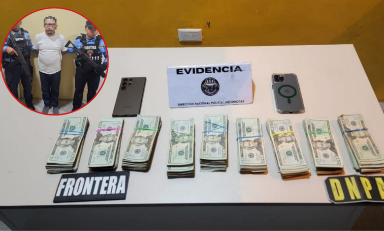 Ocotepeque.– La Dirección Nacional de Servicios Policiales Fronterizos (DNSPF) y con el apoyo de la Dirección Nacional Policial Antidrogas (DNPA), logró un importante decomiso de 18 mil dólares en efectivo, un vehículo y la detención de un ciudadano guatemalteco, presuntamente implicado en lavado de activos.
