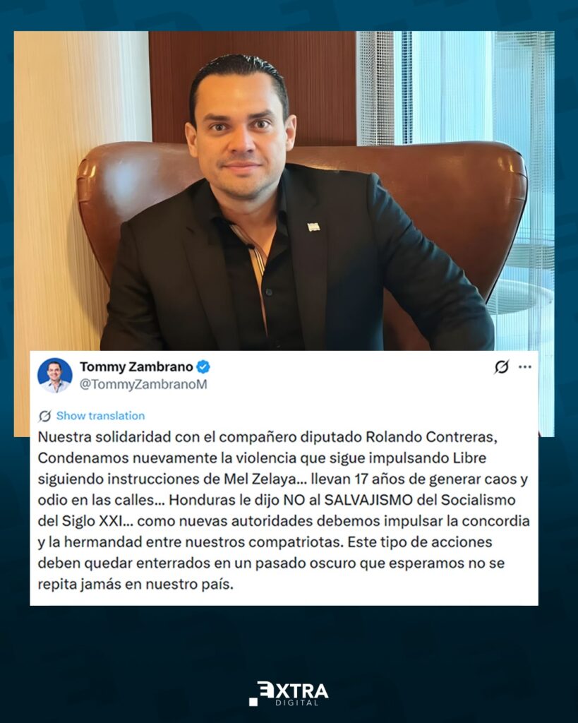 Tegucigalpa.- El jefe de la bancada del Partido Nacional, Tomás Zambrano, alzó la voz este día para expresar su total solidaridad con el diputado electo Rolando Contreras, quien fue víctima de agresiones físicas por parte de grupos identificados con el partido oficialista. Zambrano fue tajante al condenar la violencia, asegurando que estos actos siguen instrucciones directas de Manuel “Mel” Zelaya.