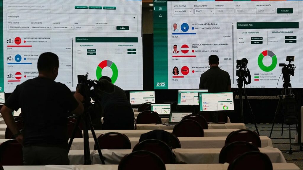 Tegucigalpa. — Tras varios días de paralización por problemas técnicos, el Consejo Nacional Electoral (CNE) reanudó este lunes el conteo de resultados de las elecciones generales del 30 de noviembre, confirmando una ventaja estrecha del candidato presidencial del Partido Nacional, Nasry ‘Tito’ Asfura, sobre su más cercano competidor, Salvador Nasralla, del Partido Liberal. La consejera … Sigue leyendo Elecciones Honduras: CNE reinicia conteo y Asfura mantiene ligera ventaja