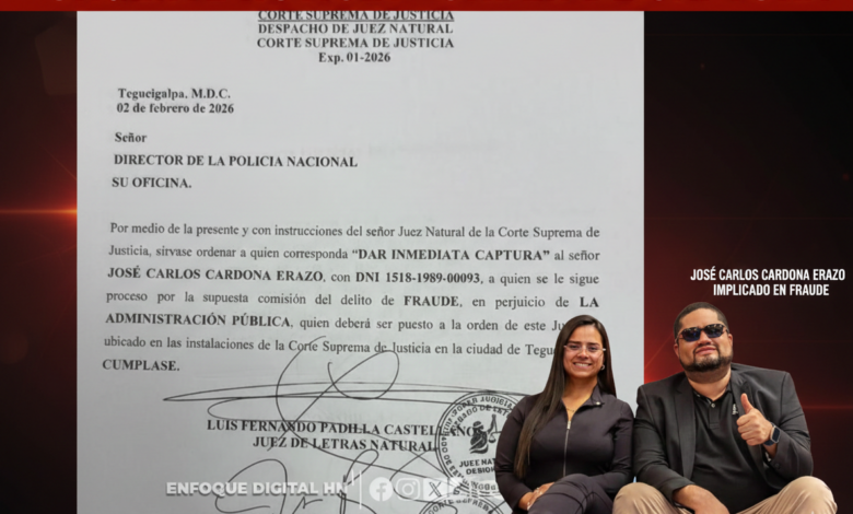 “Por medio de la presente y con instrucciones del señor juez natural de la Corte Suprema de Justicia sirve a ordenar a quien corresponda dar inmediata captura al señor José Carlos Cardona Erazo por el delito de Fraude”, expone el documento enviando al jefe policial.
