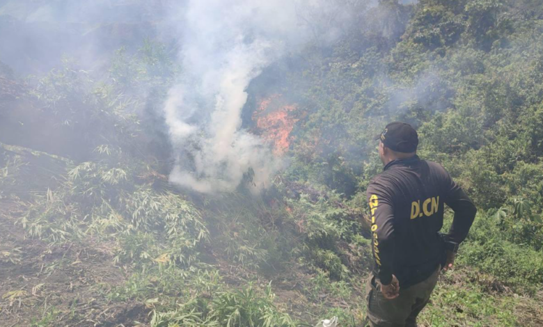 Según el informe oficial, la plantación tenía una extensión aproximada de dos manzanas de terreno. Durante la intervención, las autoridades procedieron a la erradicación e incineración de 10,097 plantas de marihuana.