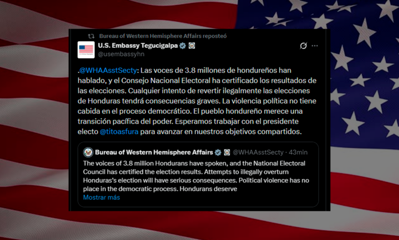 Tegucigalpa.- El Gobierno de Estados Unidos emitió este sábado un respaldo contundente a los resultados oficiales certificados por el Consejo Nacional Electoral (CNE) tras los comicios del pasado 30 de noviembre. A través de un comunicado oficial, la administración estadounidense subrayó que la voluntad de los 3.8 millones de hondureños que acudieron a las urnas debe ser respetada, reconociendo formalmente la legitimidad del proceso y cerrando filas en torno a la institucionalidad electoral del país.