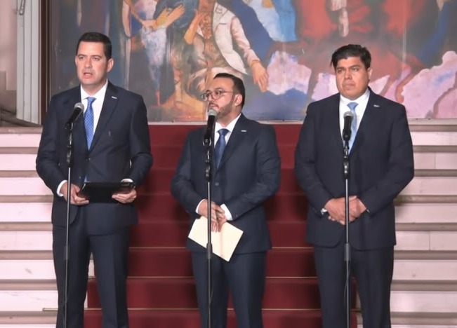 Ante los medios de comunicación, quienes salieron a brindar declaraciones fueron José Argueta, Roberto Lagos y Emilio Hércules. La conferencia de prensa sirvió para asegurar que el nuevo gobierno será con cero propagandas y con una buena responsabilidad fiscal.