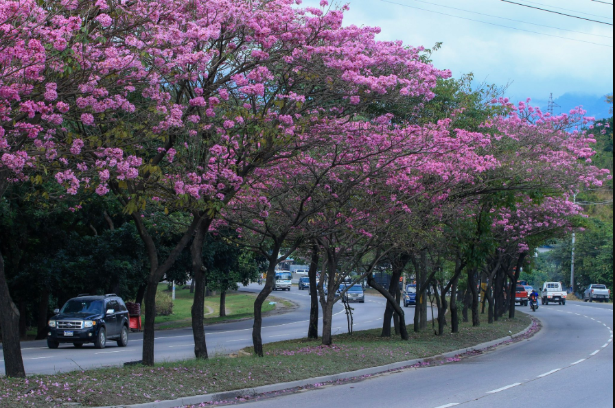 San Pedro Sula. El ritmo acelerado de la ciudad industrial parece disminuir cuando los conductores levantan la mirada. En varios puntos de San Pedro Sula, los macuelizos están en plena floración y han pintado de rosado avenidas, bulevares y medianas.