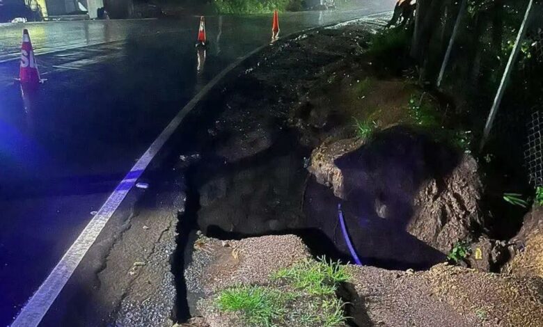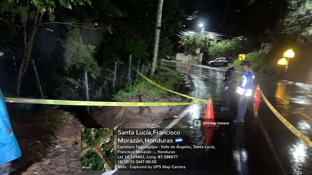 El hundimiento se produjo por la saturación del suelo tras días de intensas lluvias y el colapso de una alcantarilla ya deteriorada. “Se ha generado una especie de laguna, el derecho de vía colapsó y solo un carril está habilitado hacia Valle de Ángeles”, explicó el edil.