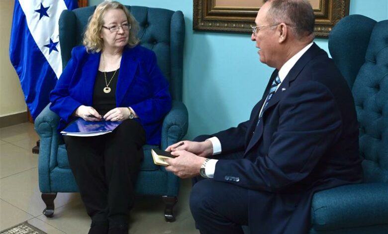 Tegucigalpa.- La Encargada de Negocios de la Embajada de los Estados Unidos en Honduras, Colleen A. Hoey, sostuvo una importante reunión de trabajo con el nuevo Ministro de Seguridad, Gerzon Onan Velásquez Aguilera. El encuentro tuvo como eje central la consolidación de la estrategia bilateral para garantizar la paz y la estabilidad en la región.