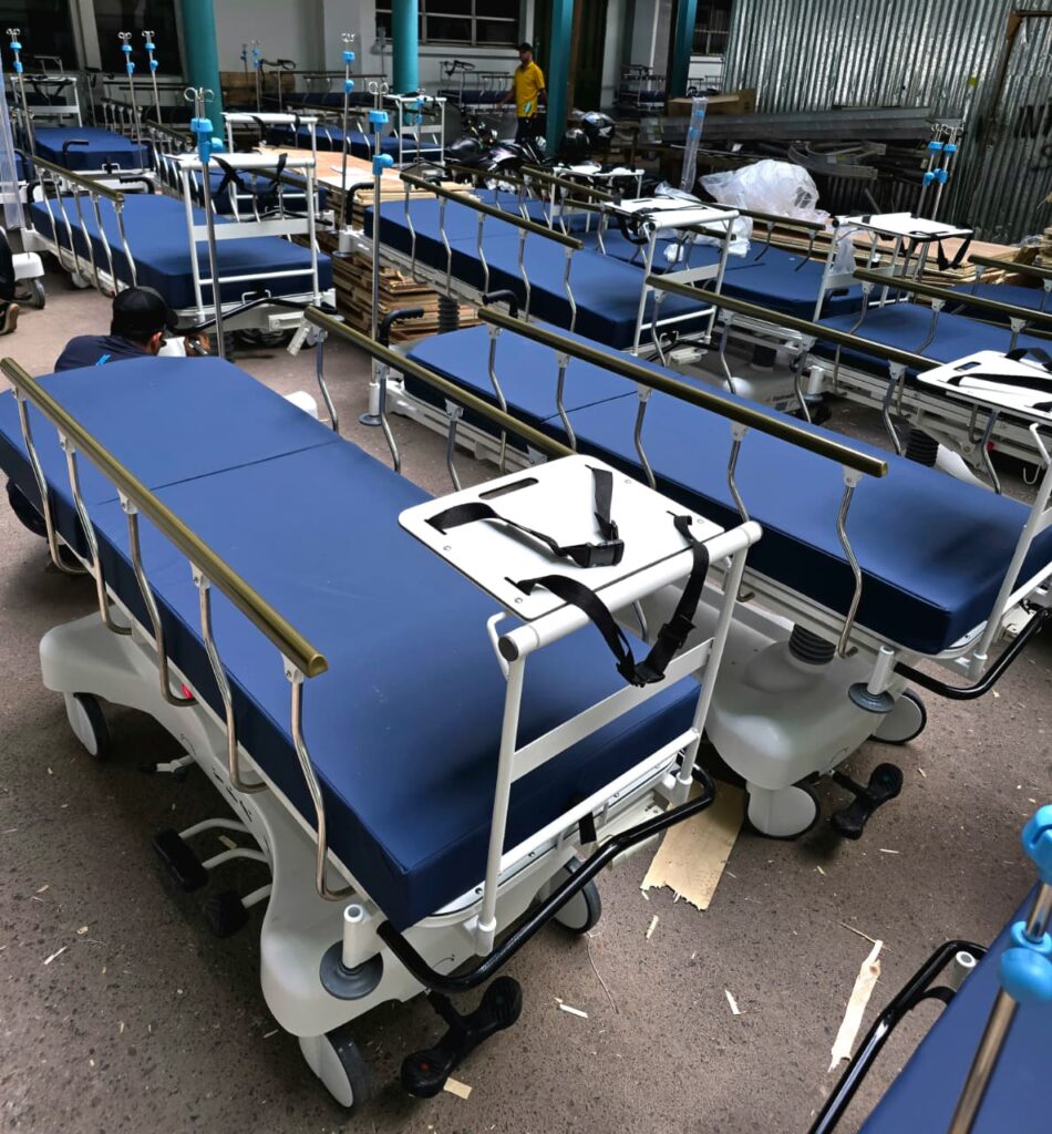 “Estas camillas cuentan con colchón impermeable, porta suero y porta monitor de signos vitales. Su altura y posición son ajustables para cuidados críticos o traslados internos”, señaló Cruz.