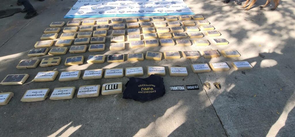 Especialistas de la Dirección Nacional Policial Antidrogas (DNPA) realizaron pruebas de campo preliminares que arrojaron resultado positivo para cocaína, aunque resta el análisis definitivo en los laboratorios de Medicina Forense del Ministerio Público para confirmar la sustancia, su pureza y valor en el mercado ilícito.