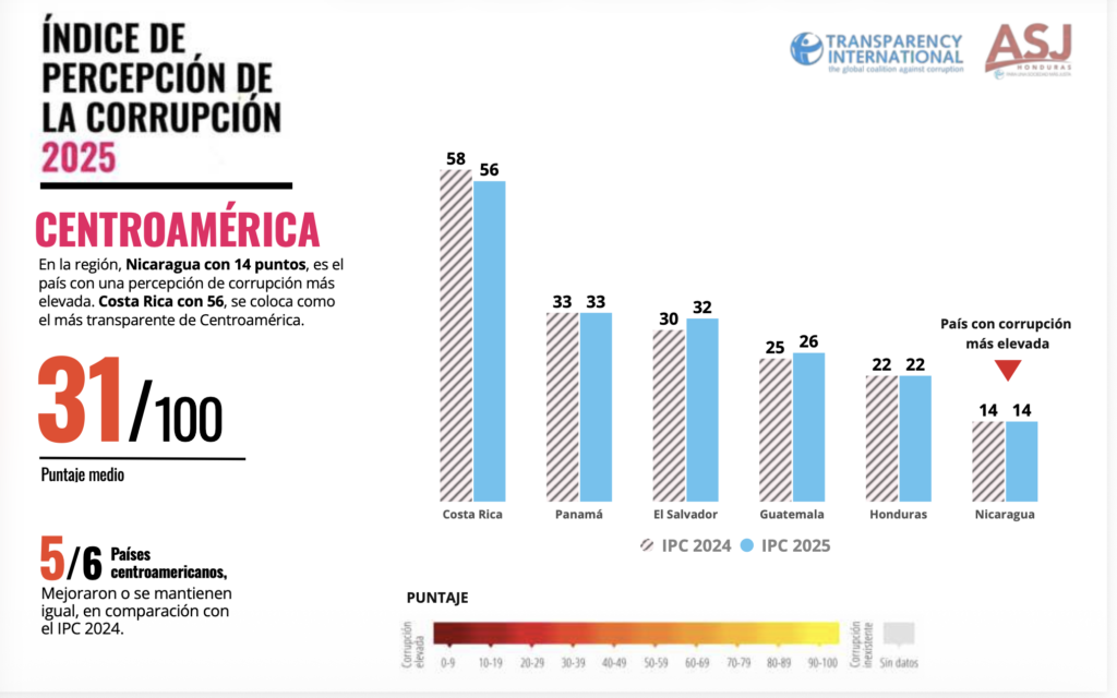 En contraste, países vecinos como Costa Rica, que supera los 50 puntos, evidencian que el estancamiento hondureño no es inevitable, sino consecuencia directa de decisiones políticas, debilitamiento de los controles institucionales y falta de voluntad para combatir redes de corrupción enquistadas en el Estado.
