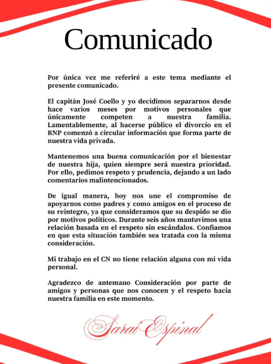 Con estas declaraciones, Saraí Espinal busca poner punto final a las noticias falsas y demostrar que, a veces, el amor se transforma y la mejor decisión es seguir caminos separados por el bien de la salud mental de todos los involucrados.