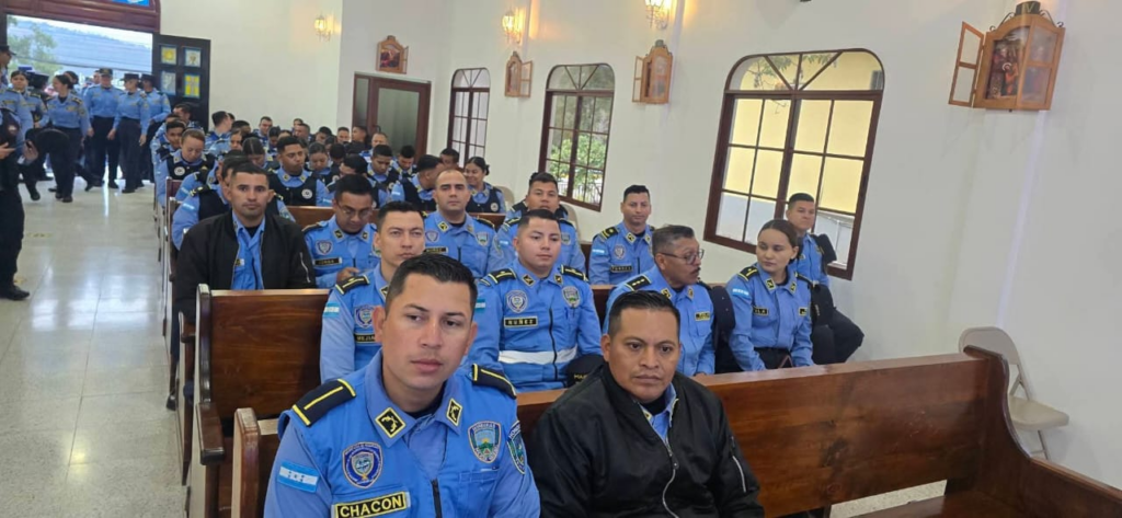Durante la ceremonia religiosa se elevaron oraciones en agradecimiento por los logros alcanzados por la institución, la protección del personal policial en el cumplimiento del deber y por la paz y seguridad del pueblo hondureño.