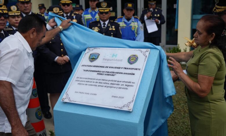 En una ceremonia cargada de solemnidad, la Policía Nacional de Honduras rindió un homenaje póstumo al Clase I de Policía, Kevin Pérez Vargas, oficializando el nombre del héroe institucional en la Jefatura Regional de la Dirección Nacional de Vialidad y Transporte (DNVT) en la zona norte del país.