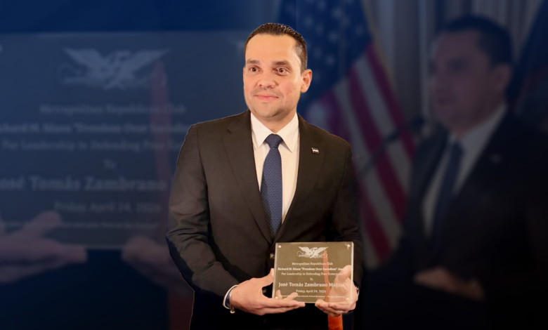 Manhattan.- El presidente del Congreso Nacional de Honduras, José Tomás Zambrano Molina, fue distinguido este viernes con el prestigioso Premio Richard M. Nixon “Freedom Over Socialism” (Libertad sobre el Socialismo). El galardón fue entregado durante la gala “Celebrating America” en Manhattan, Nueva York, un evento enmarcado en la conmemoración “America 250” que reúne a influyentes líderes del pensamiento conservador y empresarial a nivel global.