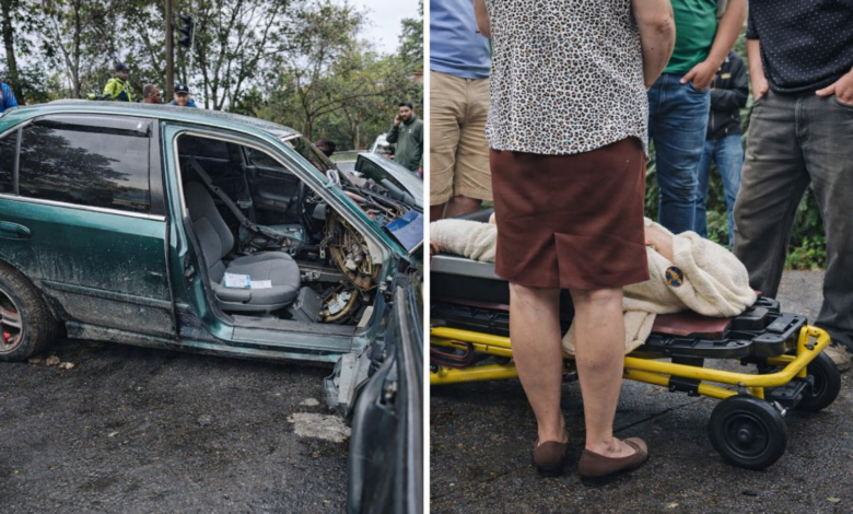 - Vehículos involucrados: Un turismo verde y un pick-up rojo.