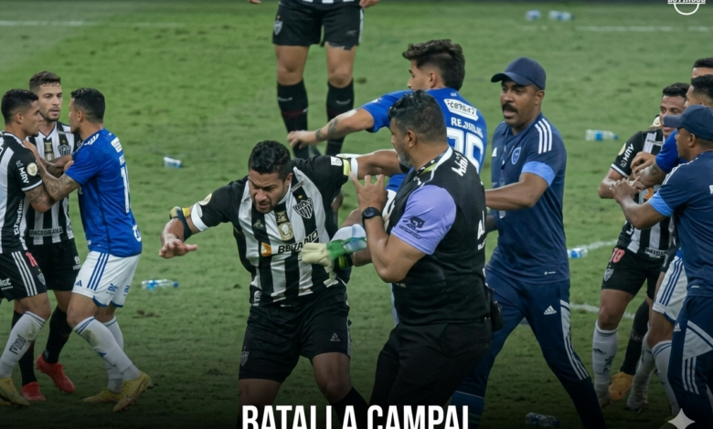 Finalizando el partido entre Cruzeiro y Atlético Mineiro comenzó una pelea que terminó con puñetazos y patadas en el campo.