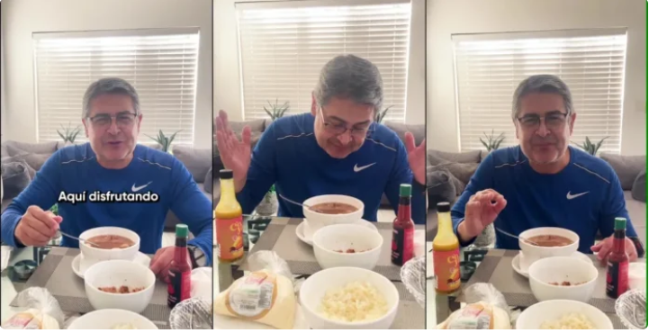El expresidente Juan Orlando Hernández (JOH) compartió un video en su cuenta oficial de TikTok (@juanorlandoha) en el que muestra un momento de descanso al que denominó “viernes de relax”, mientras disfruta de platillos tradicionales de la gastronomía hondureña.